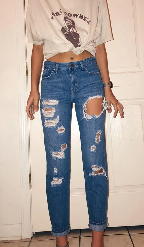 Forever 21 denim boyfriend jeans, fits really good and super cute. i love them just don’t know what... Show more