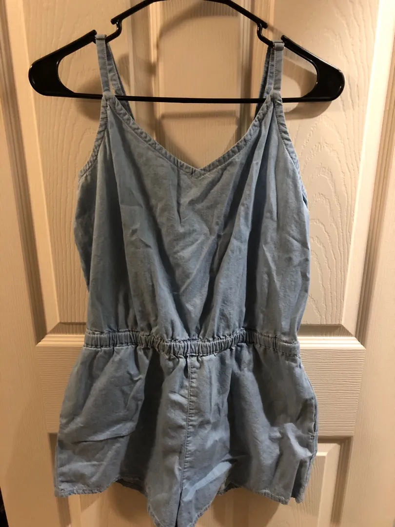 Super cute spaghetti strap v-neck denim romper! super comfortable got lots of compliments! has pocke... Show more