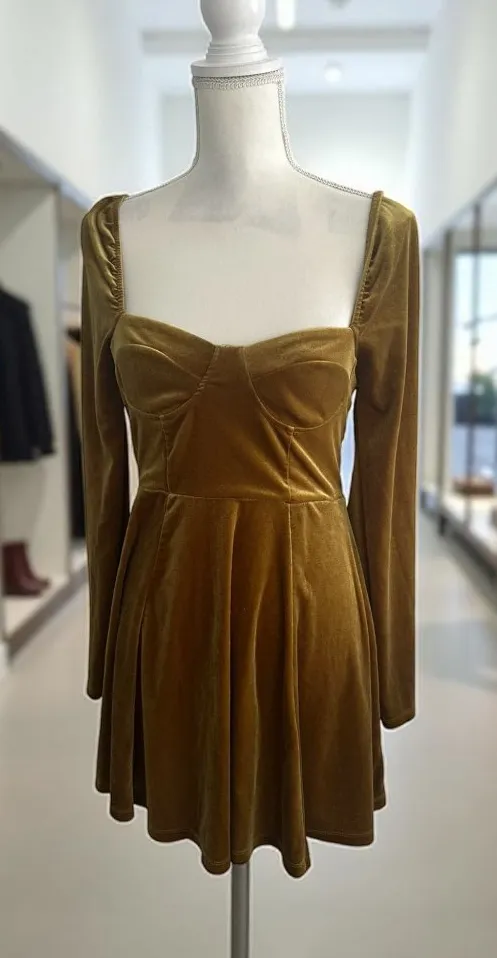 This F21 Mustard Bronze Velvet Dress is perfect for adding a touch of sophistication to any wardrobe... Show more
