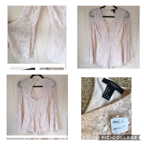 F21 New bellsleeve floral lace crochet romper Sz S Pink - $25 New With Tags - From Yesenia