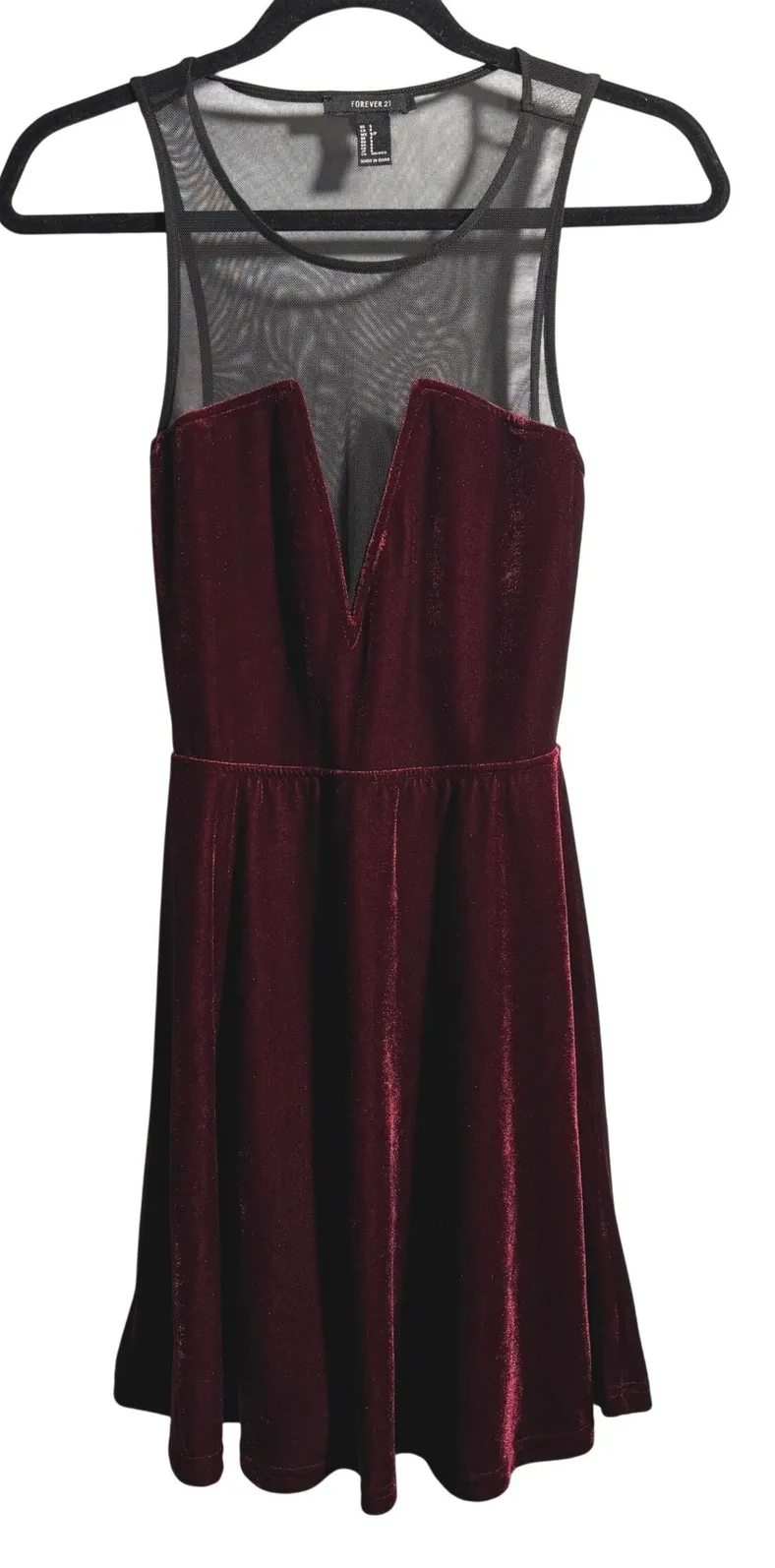 Forever 21 Red Velvet Black Mesh Mini Dress Burgundy Dark Romantic Gothic Witchy Goth S Measurement... Show more