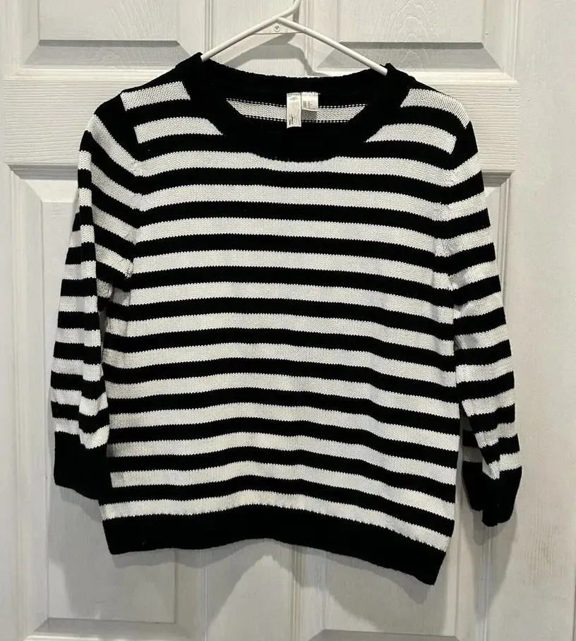 Forever 21 Natural Fiber Cotton Black And White Striped Boxy Sweater Mod Style Euc. No flaws. Back a... Show more