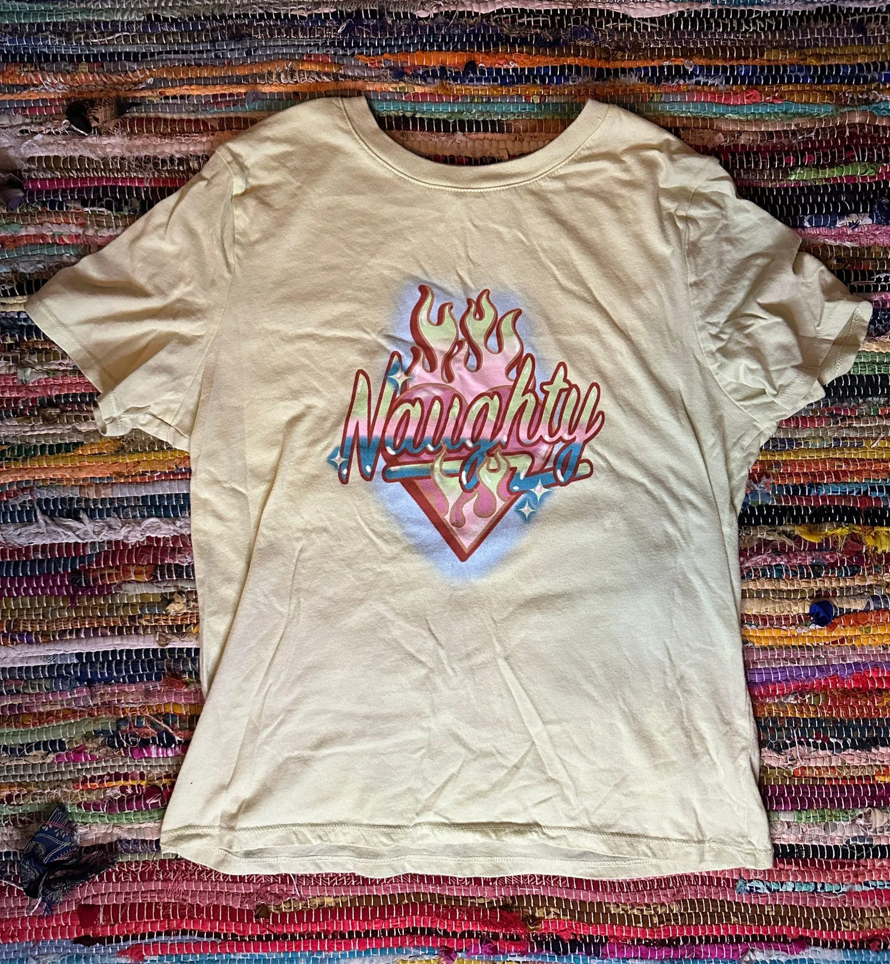 Light green graphic tee that says “Naughty” purchased from Forever 21! In great condition, barely wo... Show more
