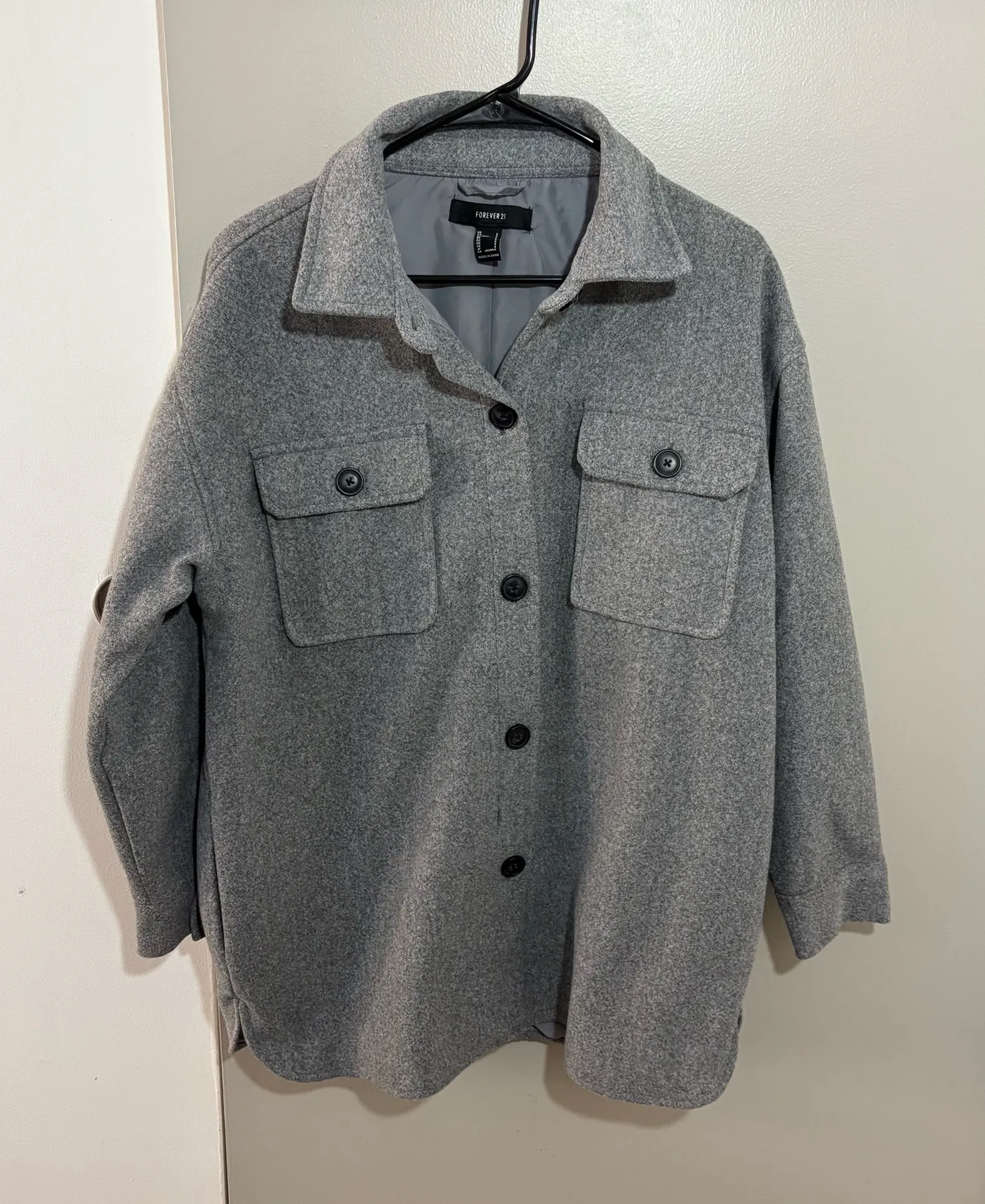 Forever 21 Grey Long Shacket Coat Beautiful button up jacket, thicker material Hardly worn, in exce... Show more