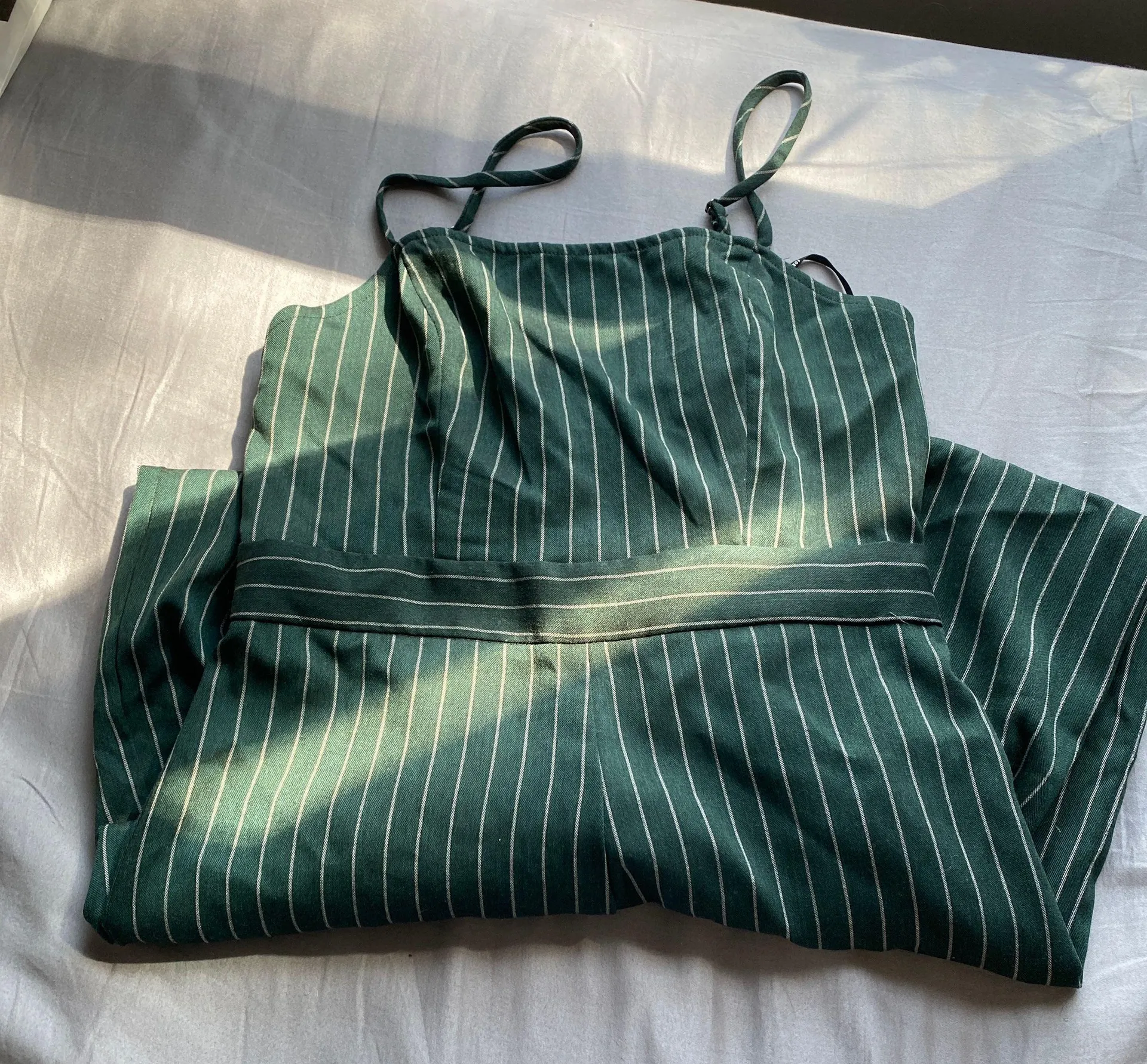 green and white striped forever 21 jumpsuit. size medium. a little short for me.