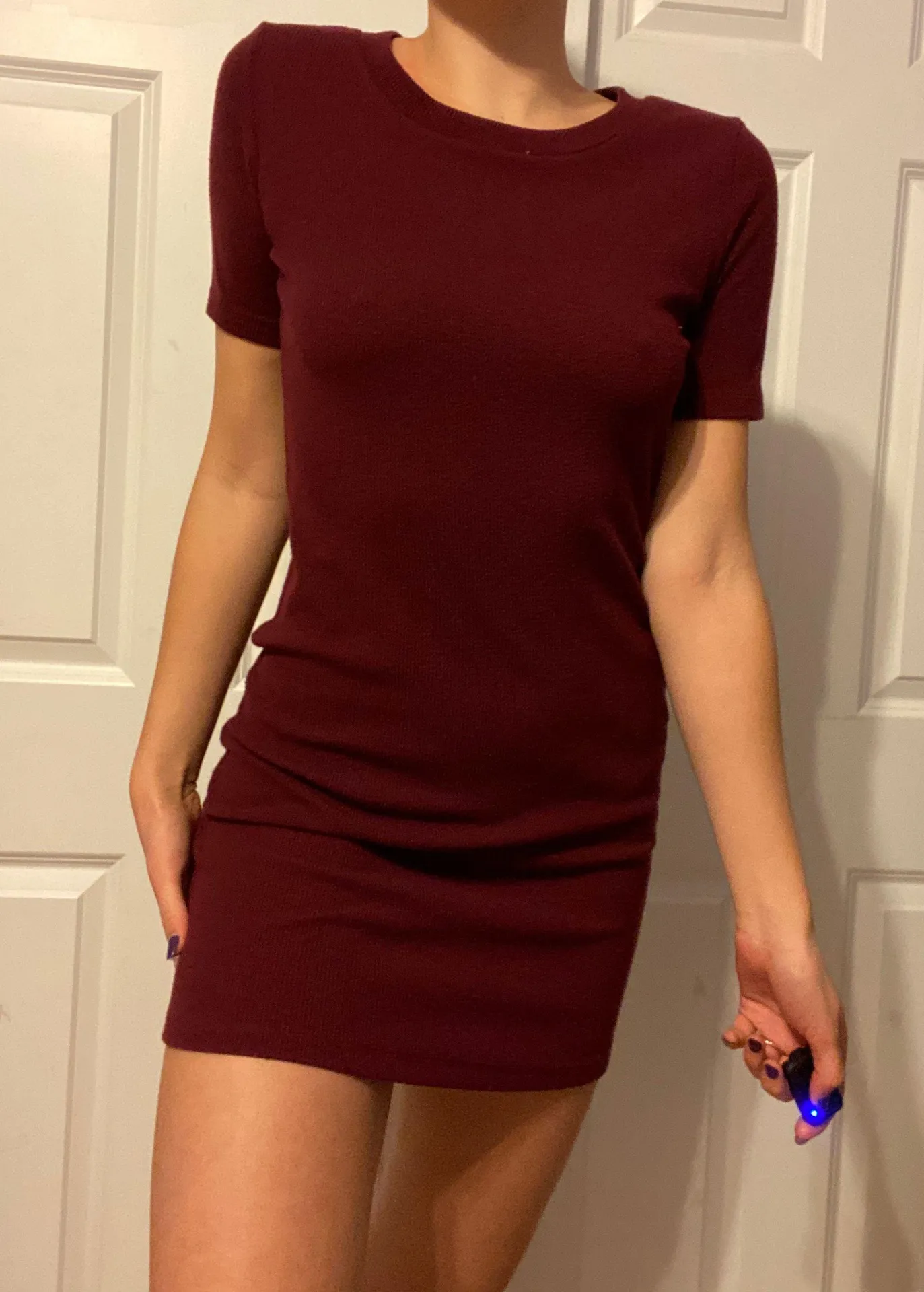 Ribbed maroon dress. Sized as an xL, but I wore it with a loser fit (I’m usually a medium). Perfect... Show more