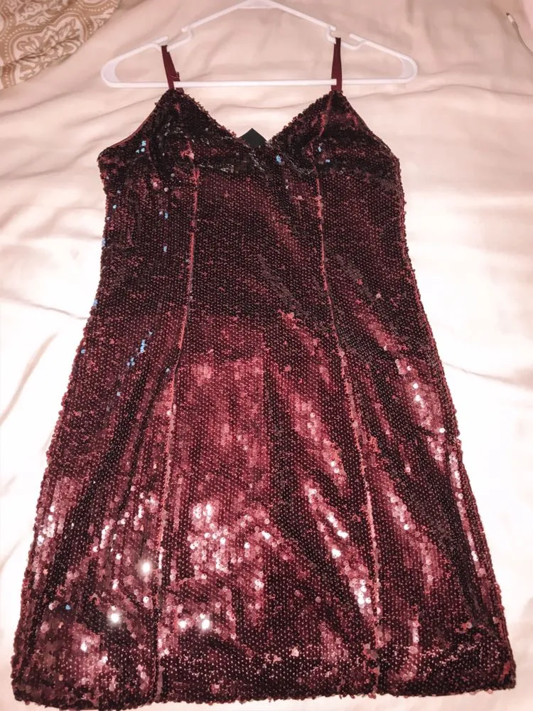 NWT Maroon sequin dress. Zips on the side. Fits true to size.