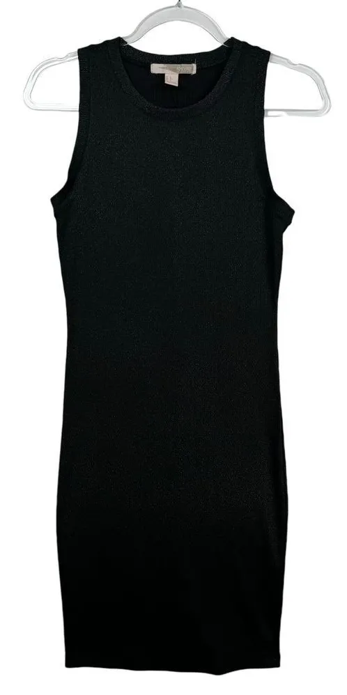 Versatile black ribbed tank dress perfect for layering or wearing alone. Form-fitting style ideal fo... Show more