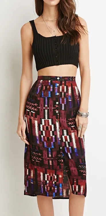 Tribal midi skirt with button front. NWOT never been worn, only packed away! Perfect for Stagecoach... Show more