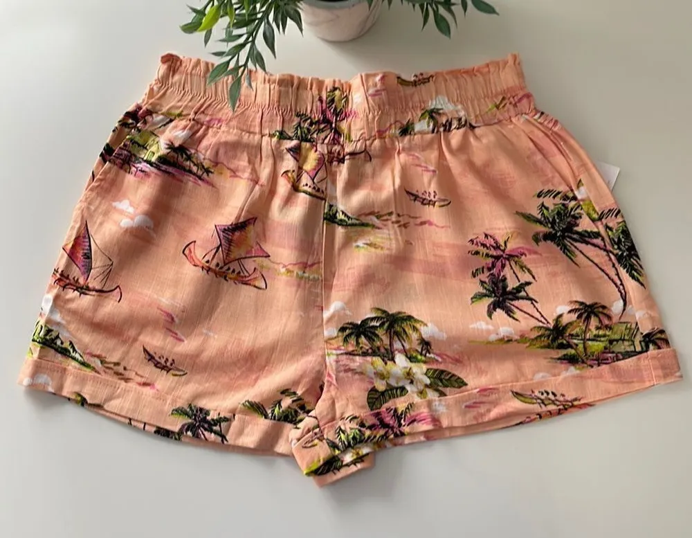 NWT Forever 21 high waist Hawaiian shorts. Rayon and Linen. Size Large. Island Flair. Rise appr... Show more