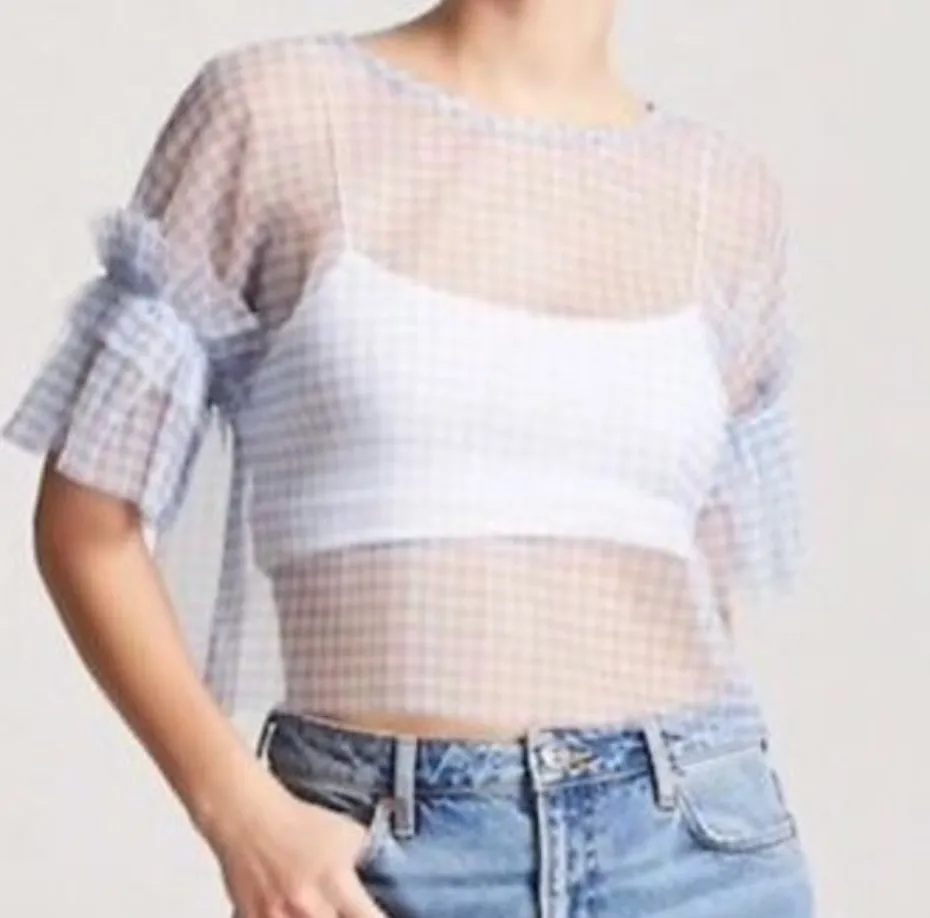 NWT Sheer Mesh Gingham Top Blue - $22 New With Tags - From Jared