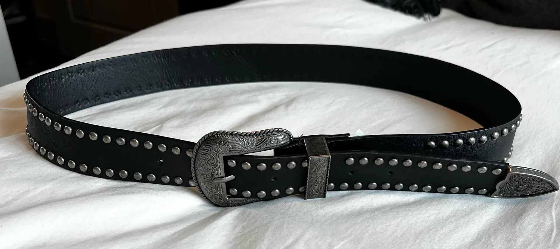 Forever 21 Old Western Faux Leather Belt Size: SM/MED, Color: BLACK 33” long from where belt meets t... Show more