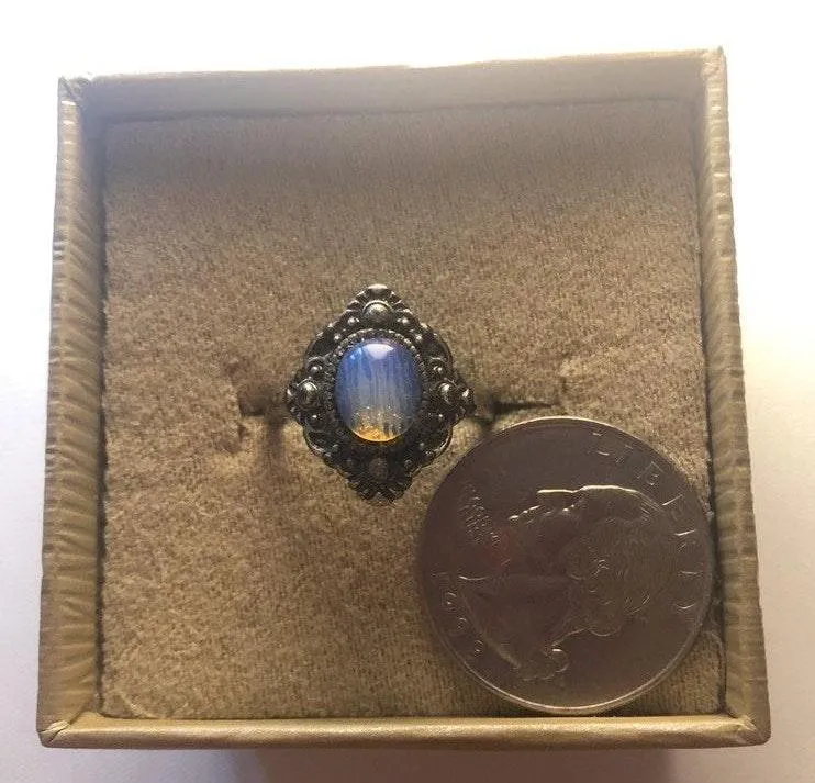 Pretty opal stone Antique looking painted sliver Right fit on size 7 finger Really pretty Shows... Show more
