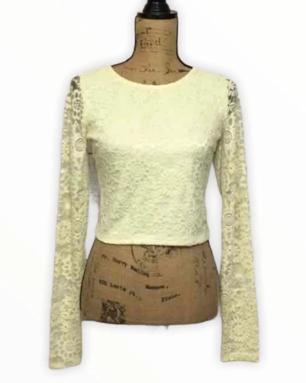 Forever 21-Pale yellow lace crop top-Lining in the front-back is see thru-Key hole closure at back o... Show more