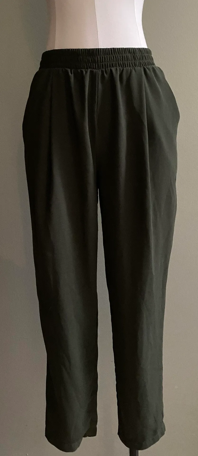 Army green straight leg cropped pant. Could be used for work or dressy occasions. Worn but still in... Show more