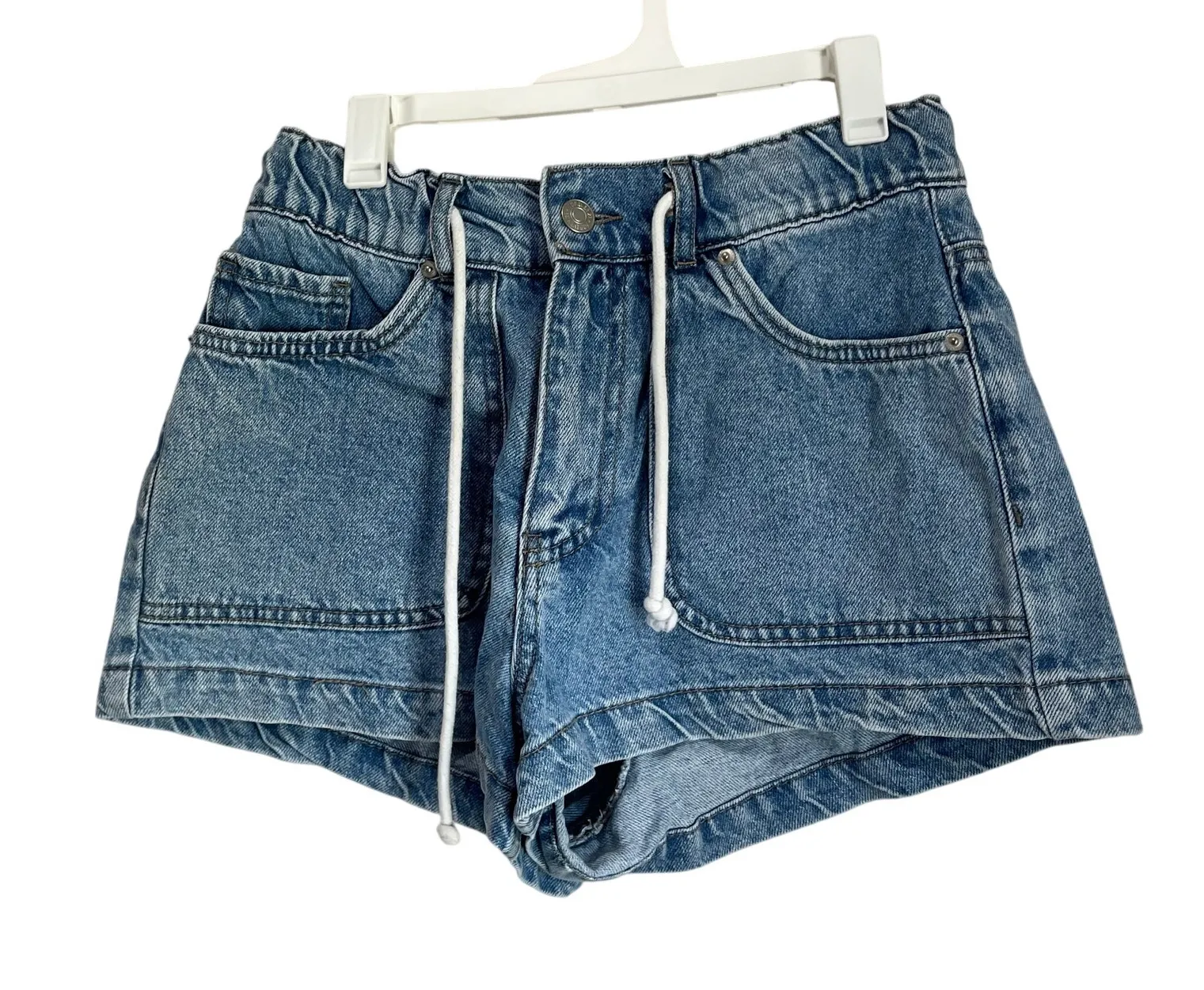 Forever 21 High Rise Drawstring Denim Shorts Size Small Rope belt Measurement are taken with the i... Show more
