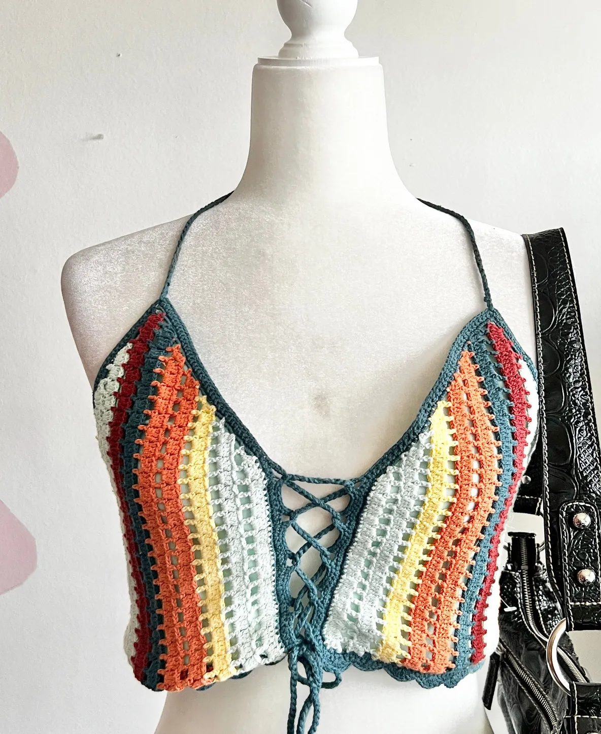 Rainbow Crochet Crop Top, Vintage Boho Y2K Festival‎ Indie Retro Small - $12 - From Kenia