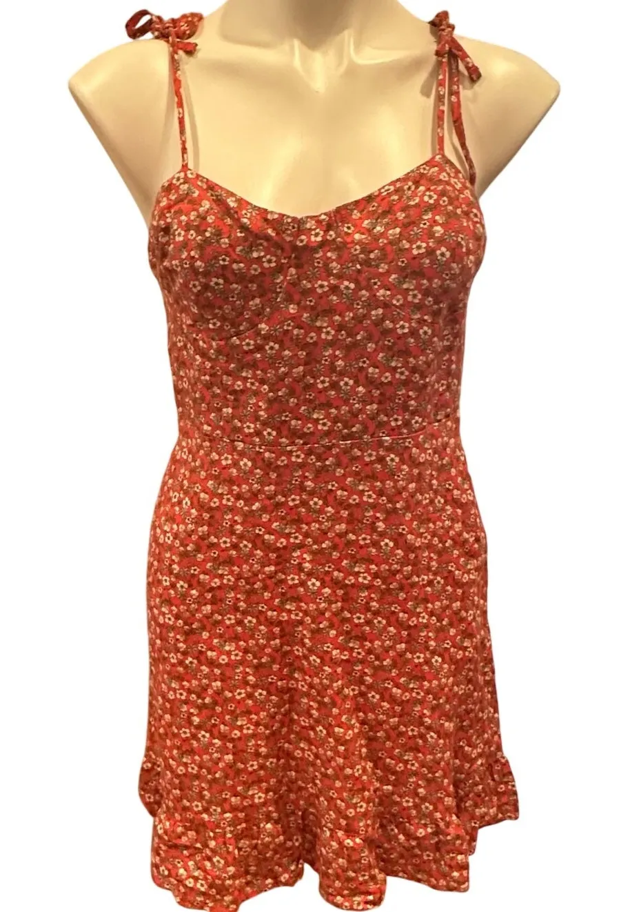 Forever 21 red floral mini dress in excellent condition! This adorable linen blend dress features a... Show more