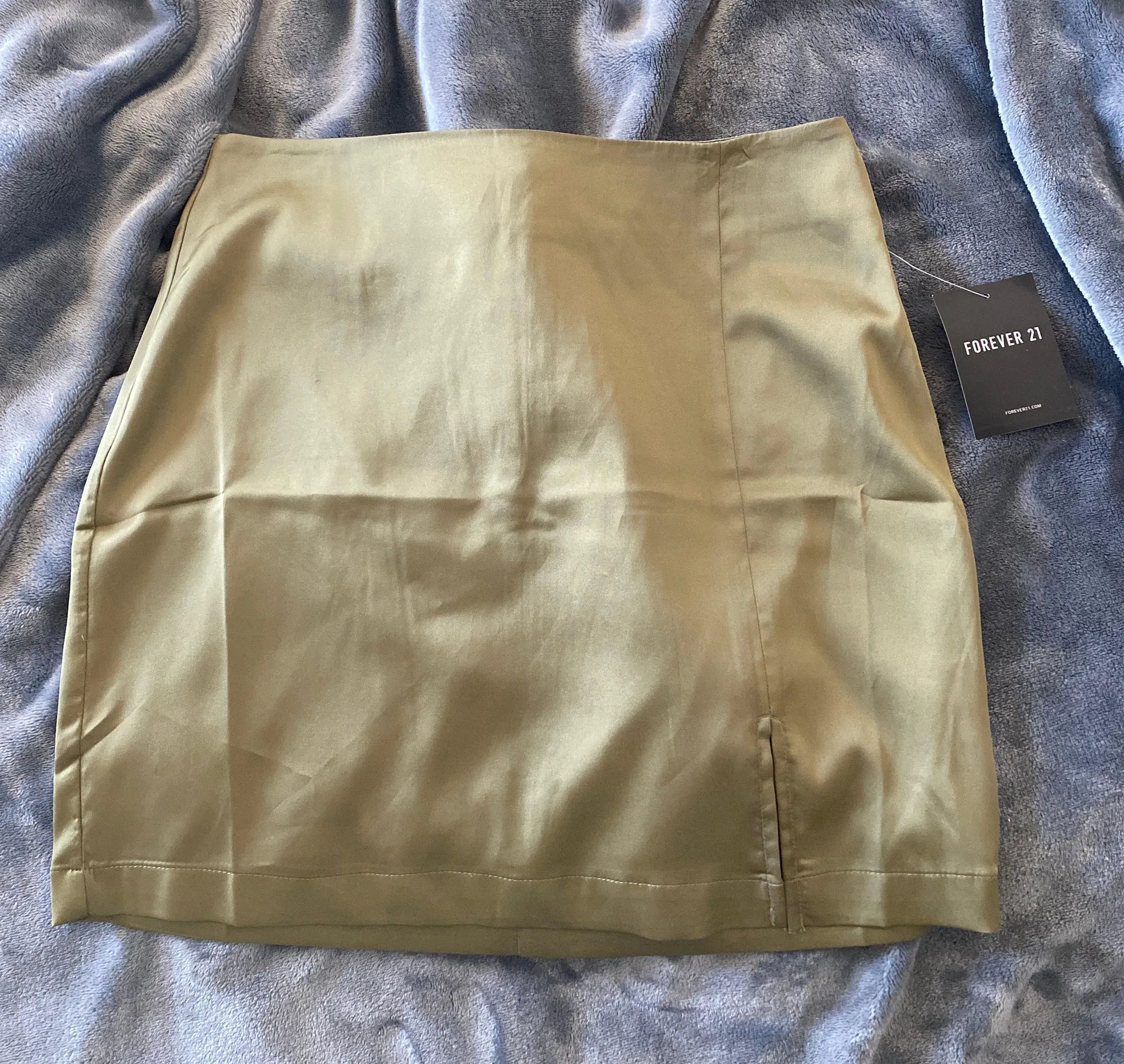 never worn but super cute! it’s a little darker in person has a little slit on the left side