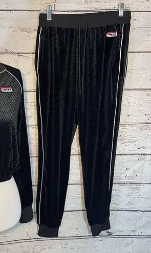 EUC Black textured velour set with "Tokyo" patches and white striping. Pants and Top are different s... Show more