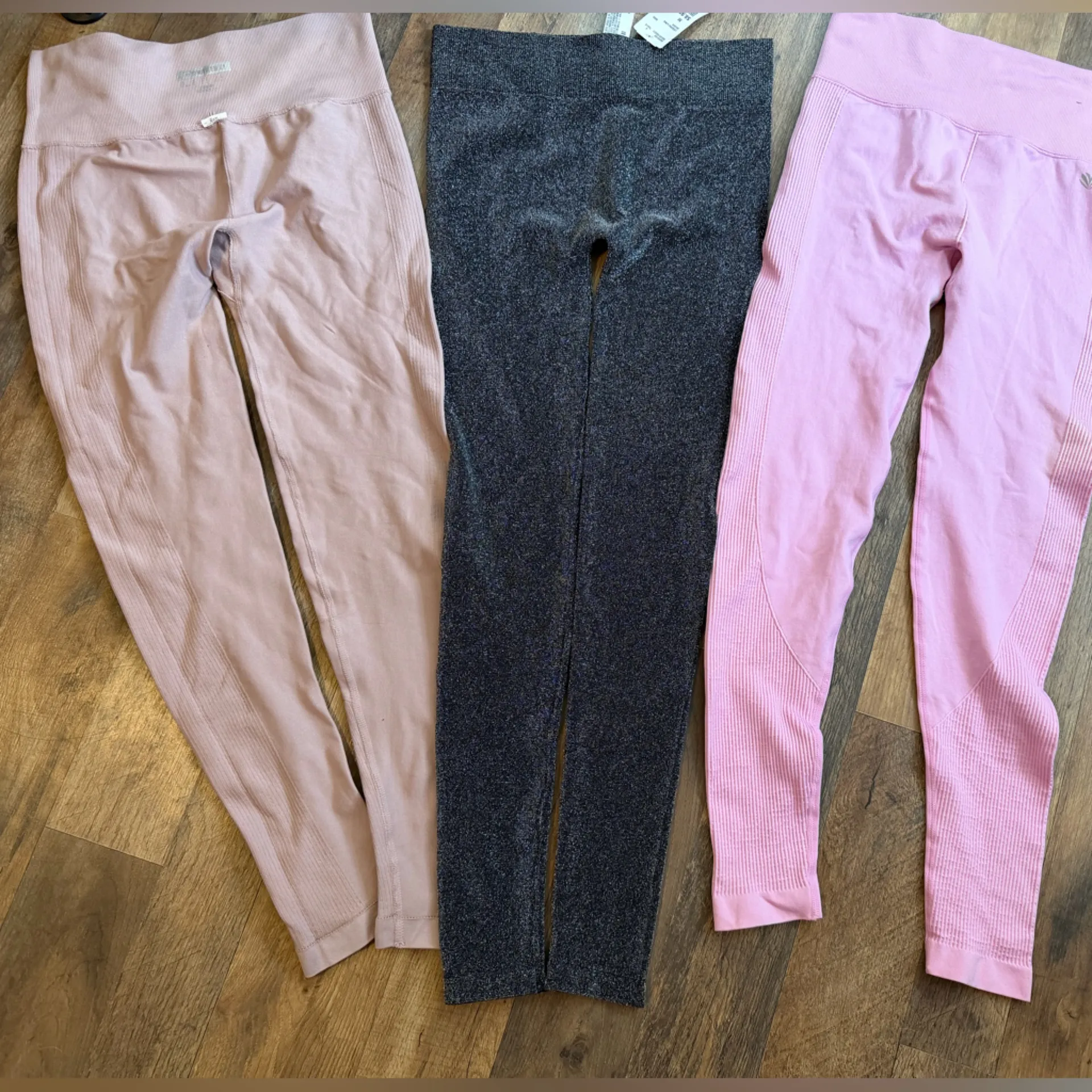 Stylish set of three leggings in pink and gray. Perfect for casual wear.