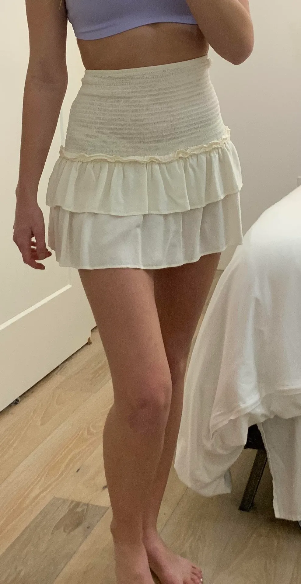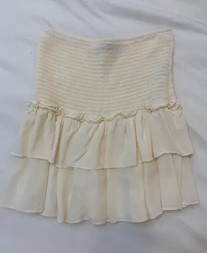 Adorable cream ruffle skirt from Forever21. Has a shirred waist and looks boutique! A bit sheer, but... Show more