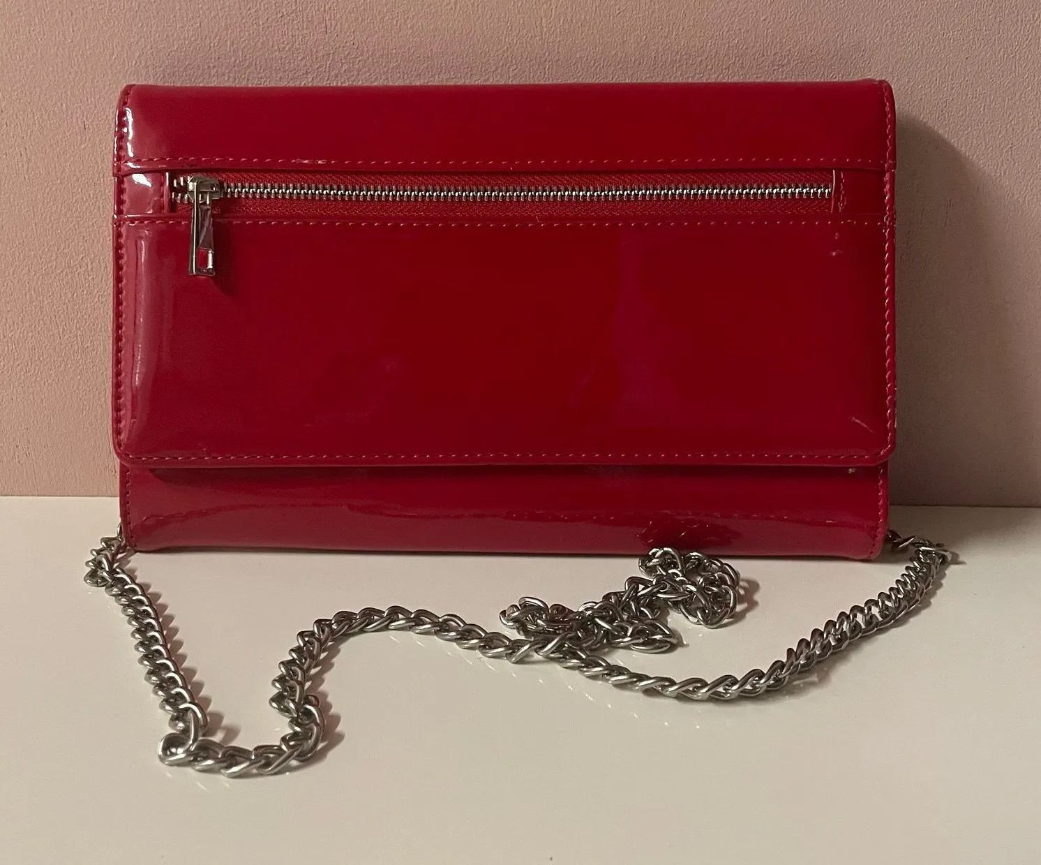 Cute red patent faux leather bag. Small but big enough to fit your phone, and a small wallet, and ma... Show more