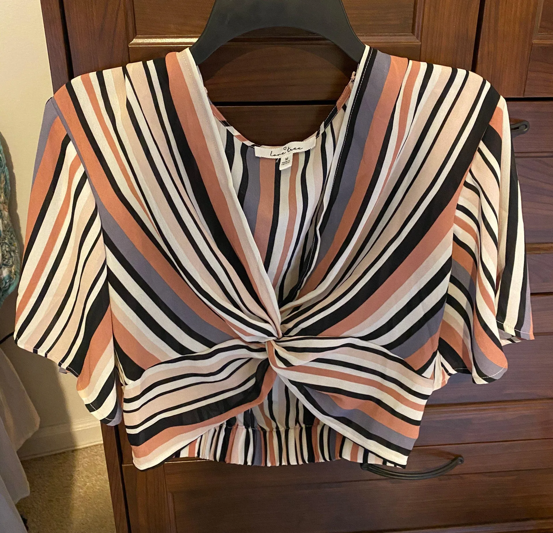 •Forever 21 stripped cropped t-shirt/blouse, sheer material •Size medium