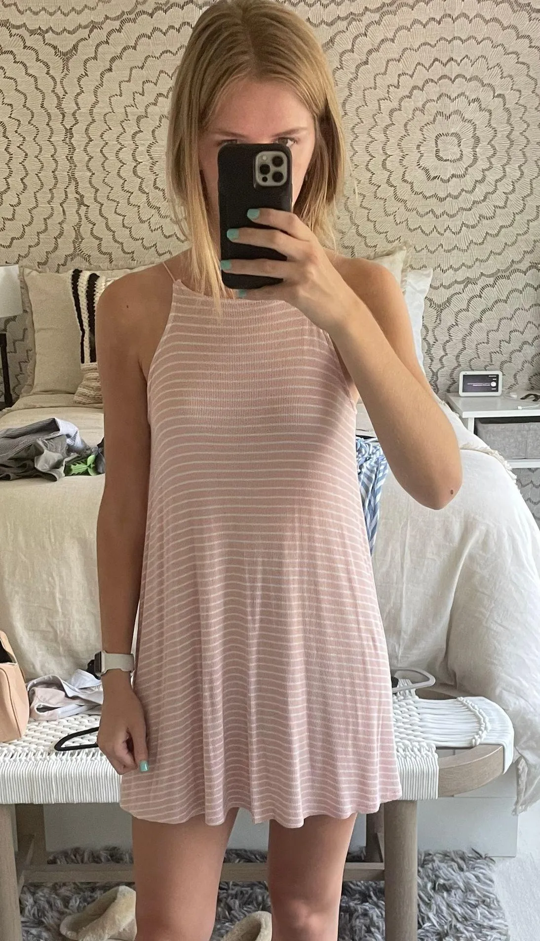 Striped, ribbed, flowy sundress. Perfect to thrown on. Pretty colors too!
