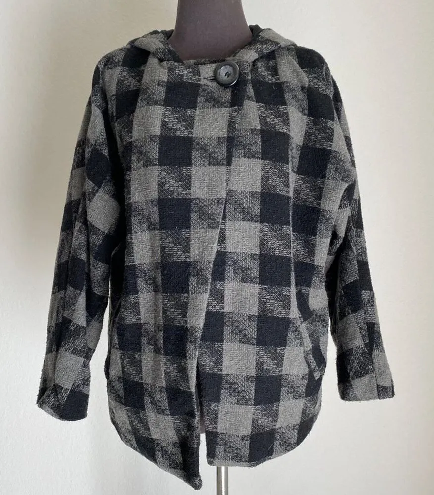 Forever 21 sz S Long sleeve plaid hooded w pocket jacket hoodie Color: Black/gray Gently used with... Show more