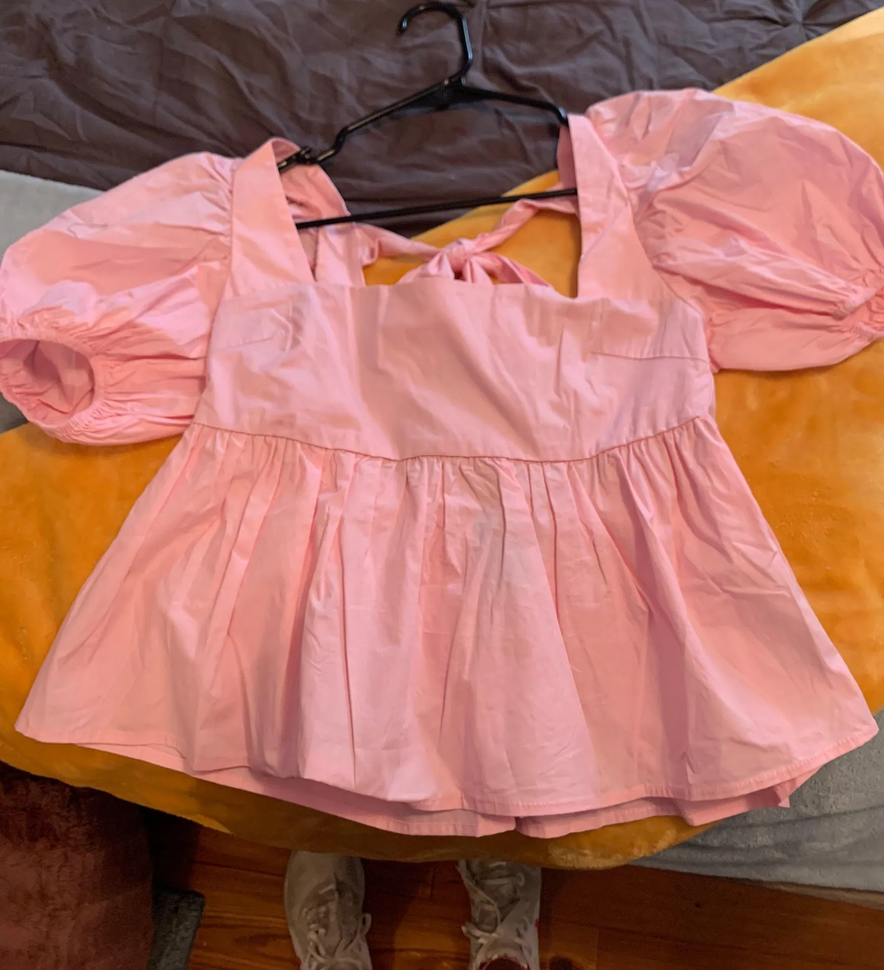 Never worn super cute top Gets wrinkly but nothing an iron or steamer cant fix Super cute back
