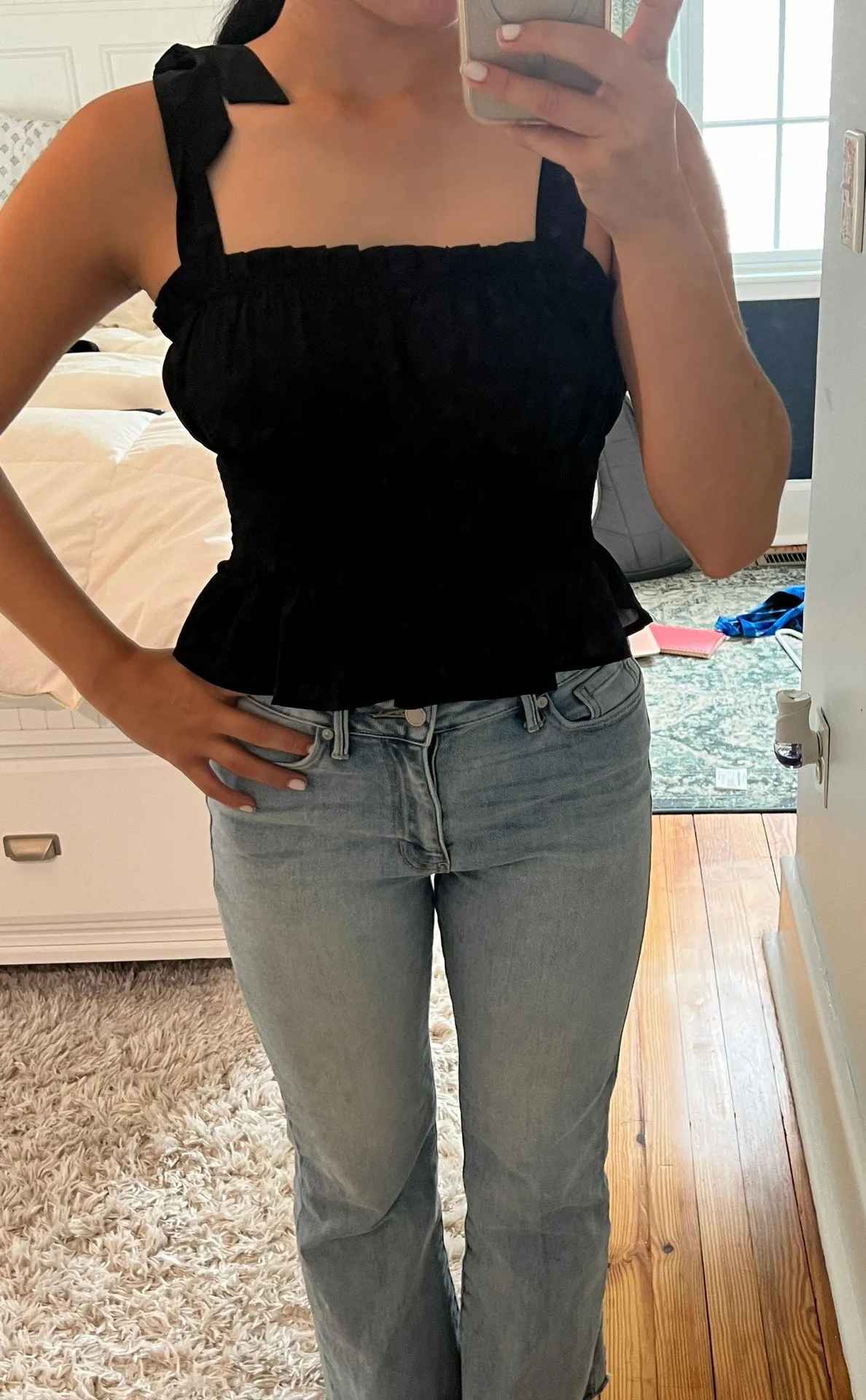 This black top is a perfect piece to wear out on a fun night!! It’s super light weight and of course... Show more