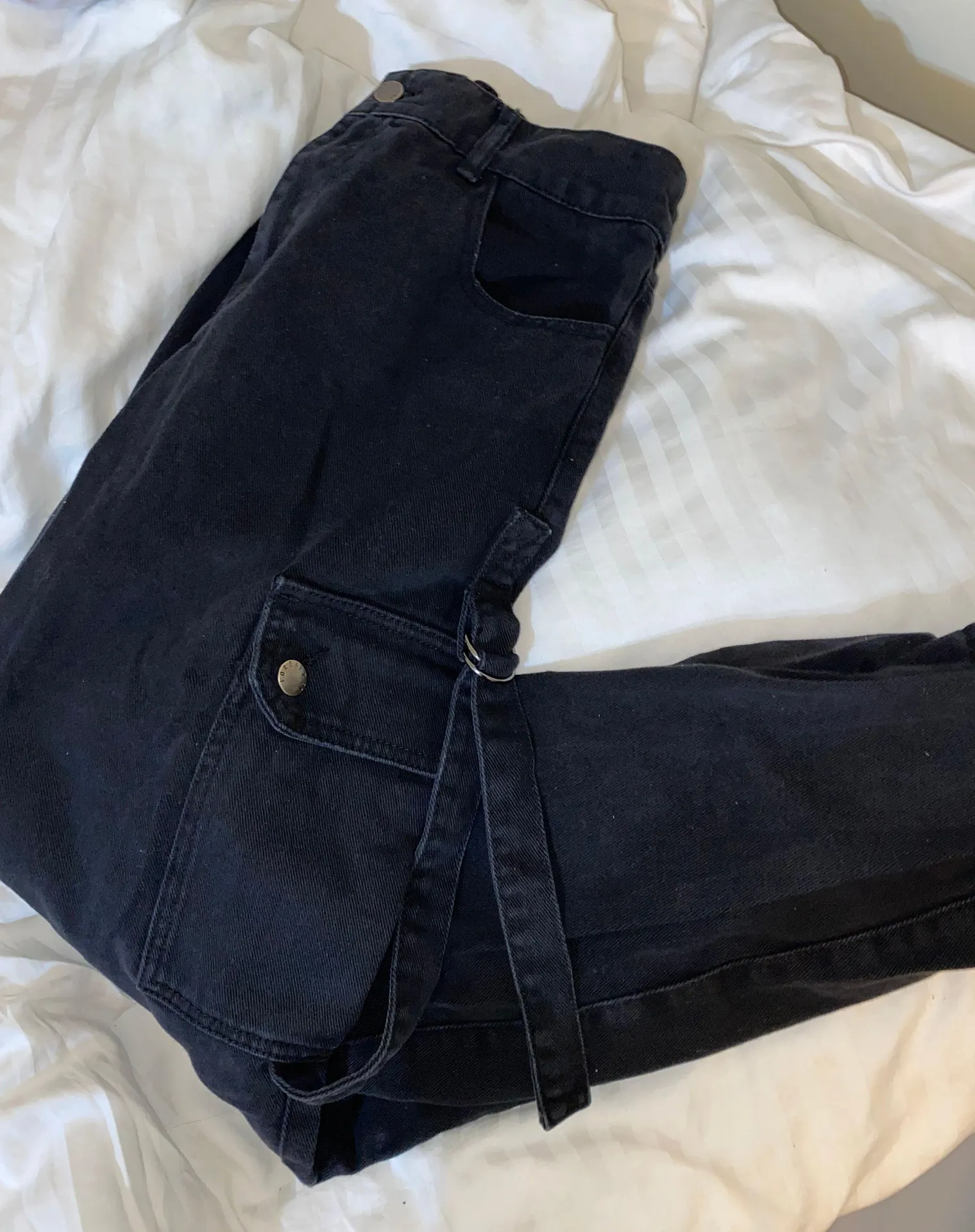 NWT AND NEVER WORN! Black cargo joggers that are so cute and they have straps and pockets on the sid... Show more