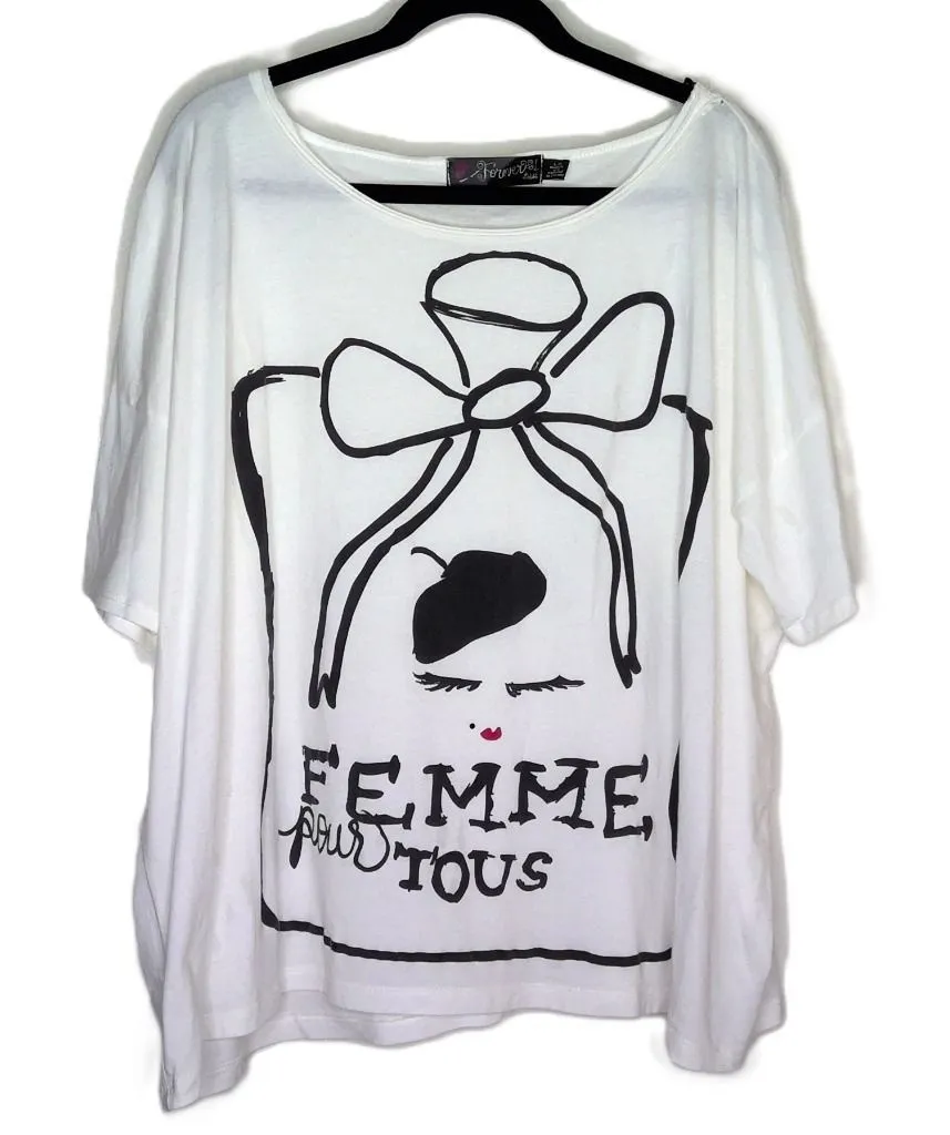 Forever 21 Twist top, size large, short sleeved, oversize tee, white & black with a touch of red, r... Show more