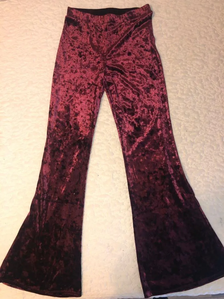 Super cute red velvet flare pants! Perfect for Valentines or to add that little spice to any outfit!... Show more