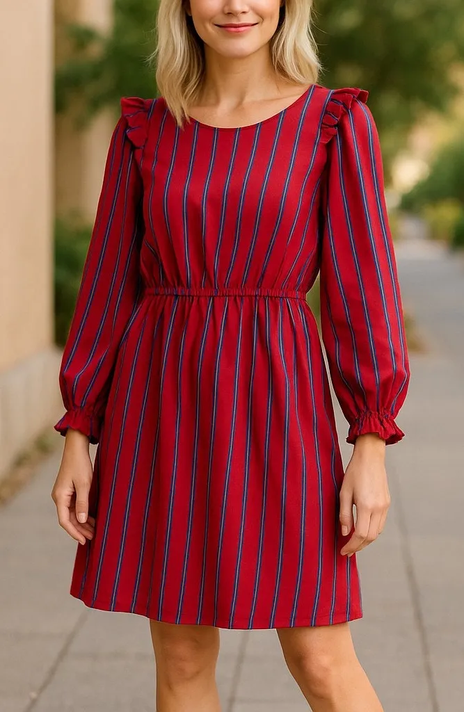 Forever 21 Vintage Look Burgundy Blue Striped Ruffle Dress Size M GENERALLY SHIP SAME OR NEXT DAY F... Show more