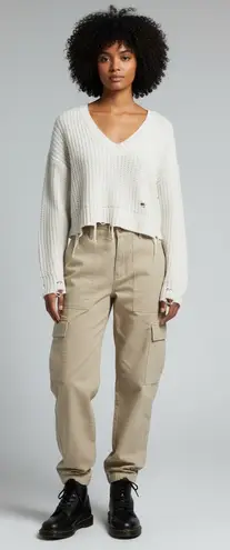 Women’s Chunky Knit distressed open knit v-neck oversized cropped sweater m Size Large Great condi... Show more
