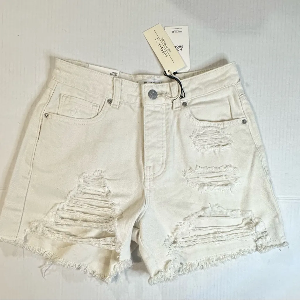 New with tags/ some handling smudges/ some small marks Forever 21 beige distressed mom short high r... Show more