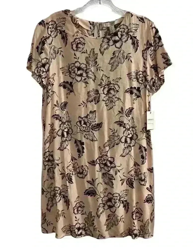 Forever 21 Women's M Beige Floral Knee Length Dress Short Sleeve Casual Description: This Forever 2... Show more