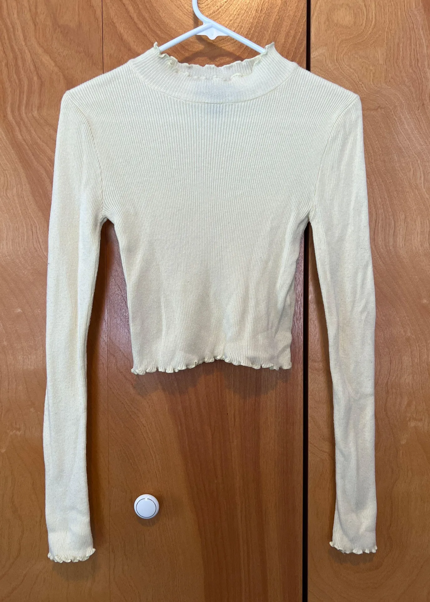 Stretchy crop top - this is about belly button length, that is why the sleeves look so long in compa... Show more