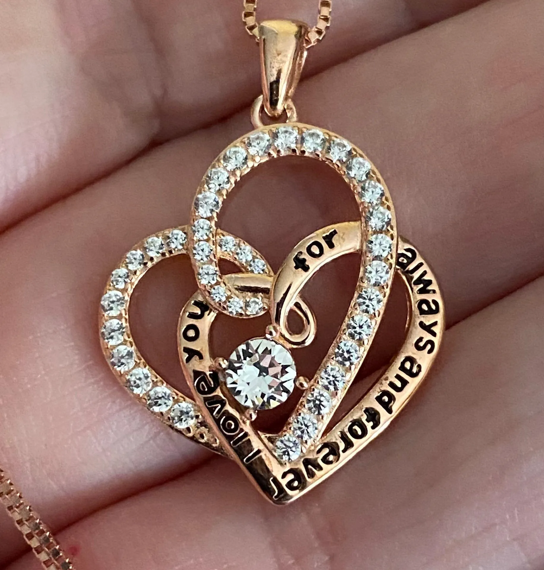 Forever Love Heart CZ Necklace Sterling Silver & Rose Gold Necklace Engraved 'I love you for always... Show more