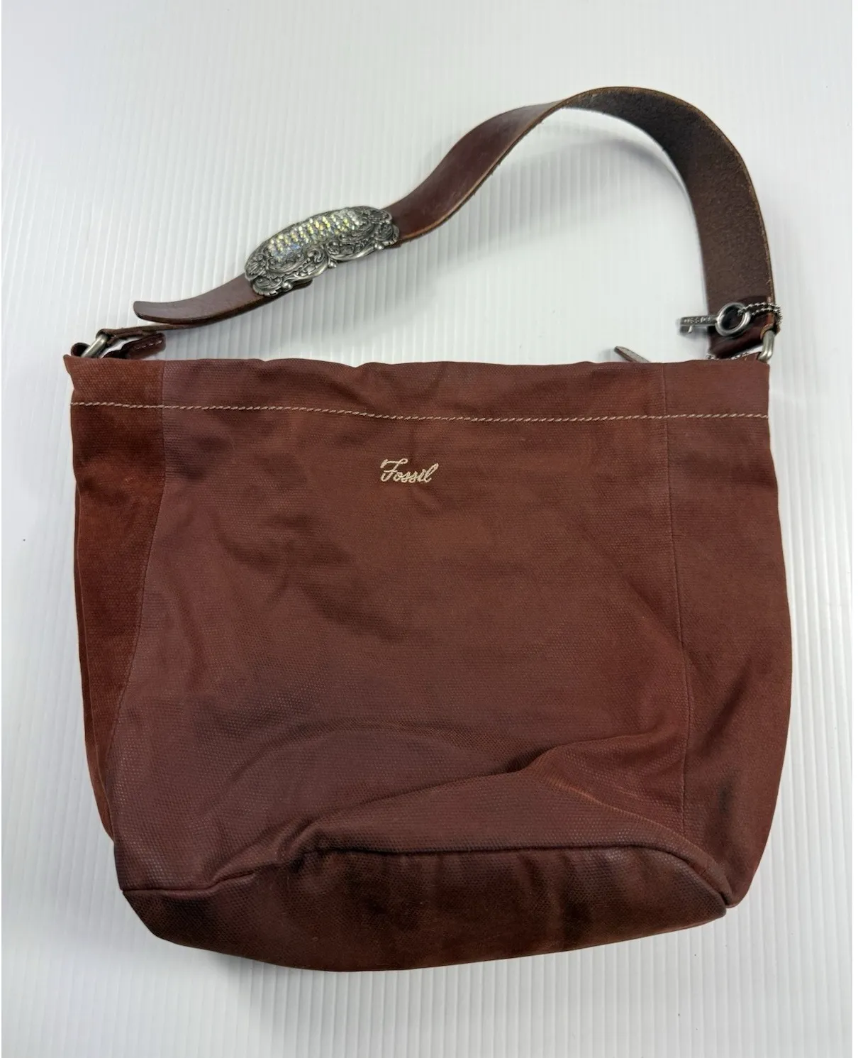 Fossil 1954 Corduroy‎ Purse Shoulder Bag Leather Accents Bling Strap Brown - $35 - From Yannie