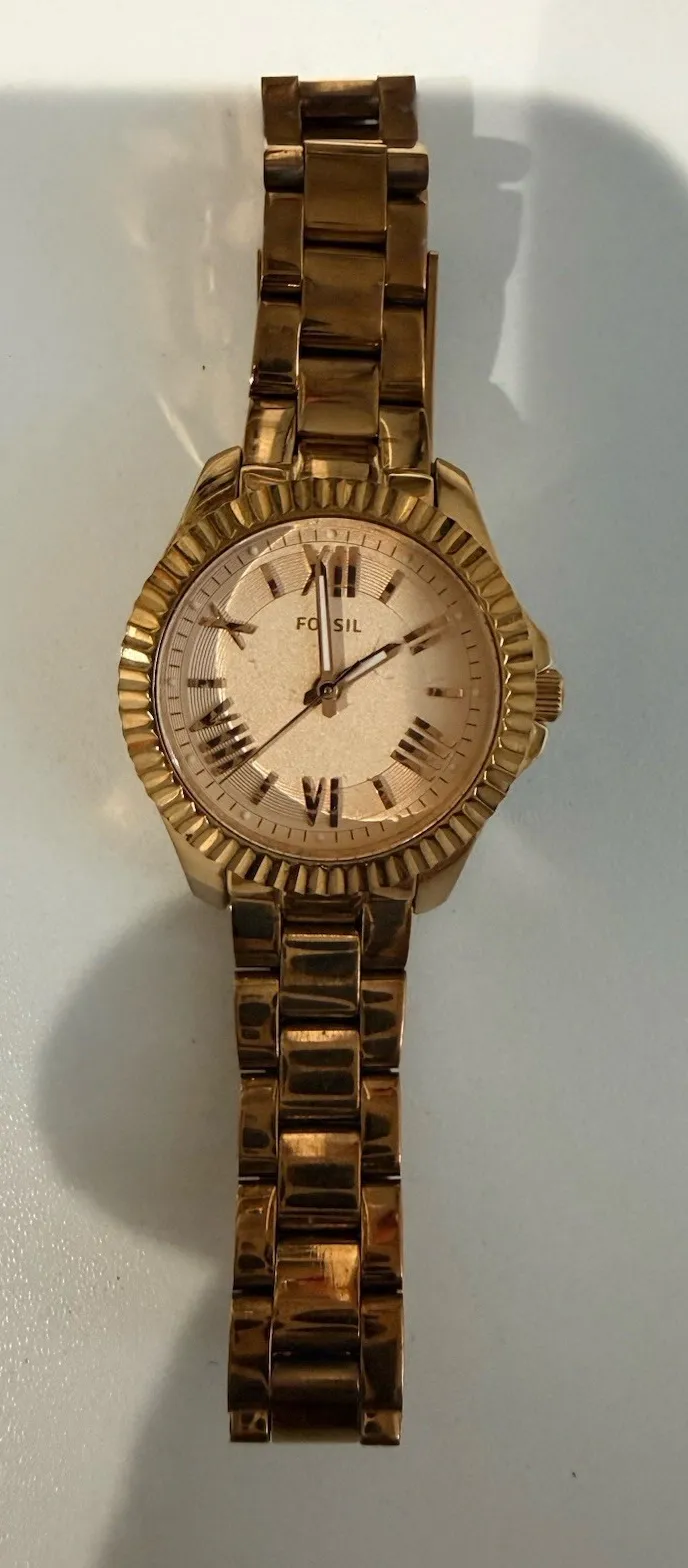 Fossil AM 4611 Women's All Stainless Steel Analog Date Day Gold Quartz Watch - $35 - From ivette