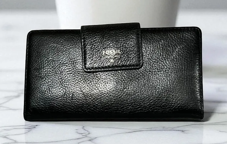 Fossil Black Leather Clutch Wallet Wristlet Zip Around Coin Purse Women 7"x3.5" Type: Wallet Color:... Show more