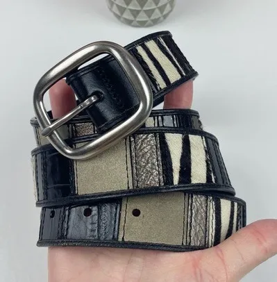 Fossil Leather Black Tan Cream Belt Zebra Print Animal Block Women size large Genuine leather Pre-o... Show more