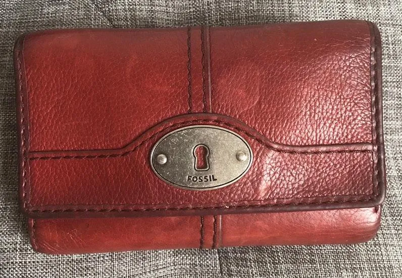 Leather Fossil wallet with lots of slots for cards and a zip coin pocket in the back. Used but in go... Show more