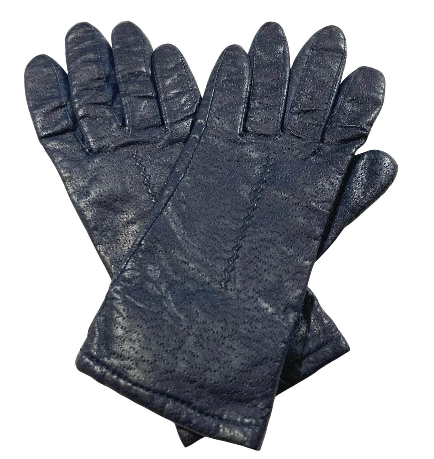 Fownes Women 6.5 Navy Blue Leather Lined Driving Gloves Minimalist Classic Gift - $15 - From Whitney
