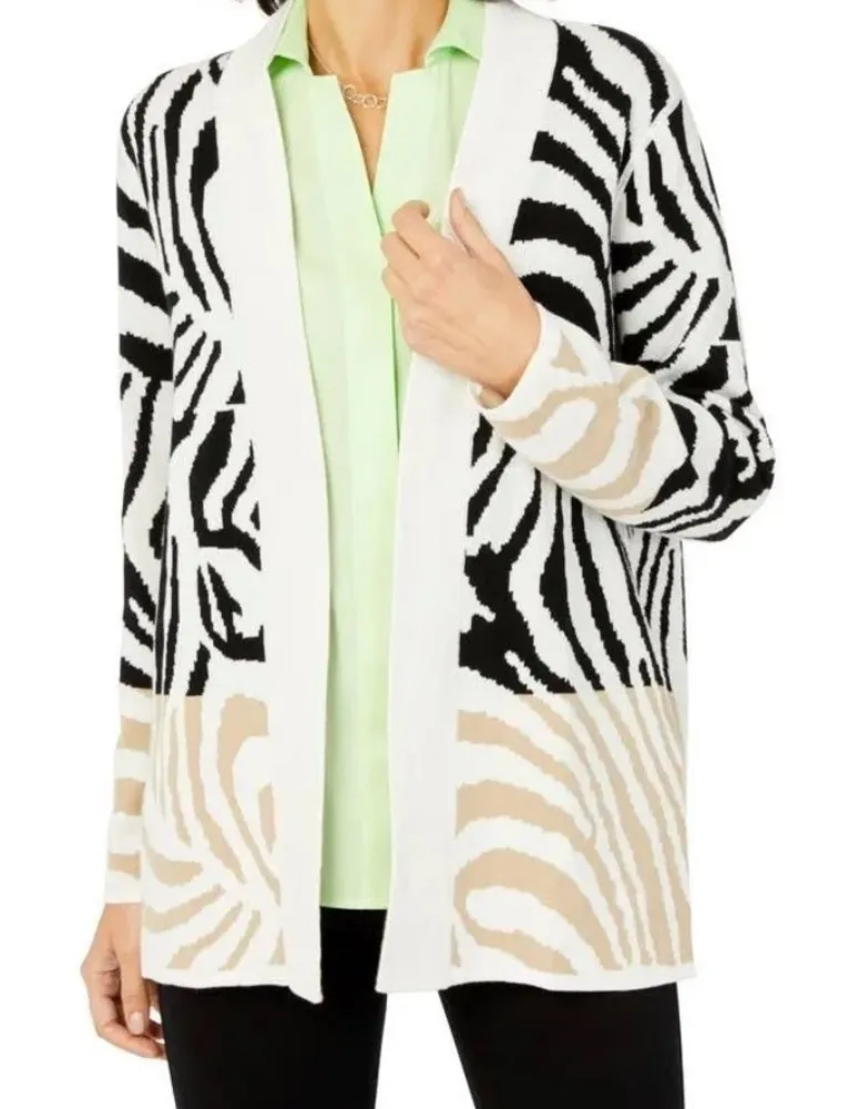 Foxcroft Animal Print Open Front Cotton Cardigan Black Size undefined - $35 - From Mary