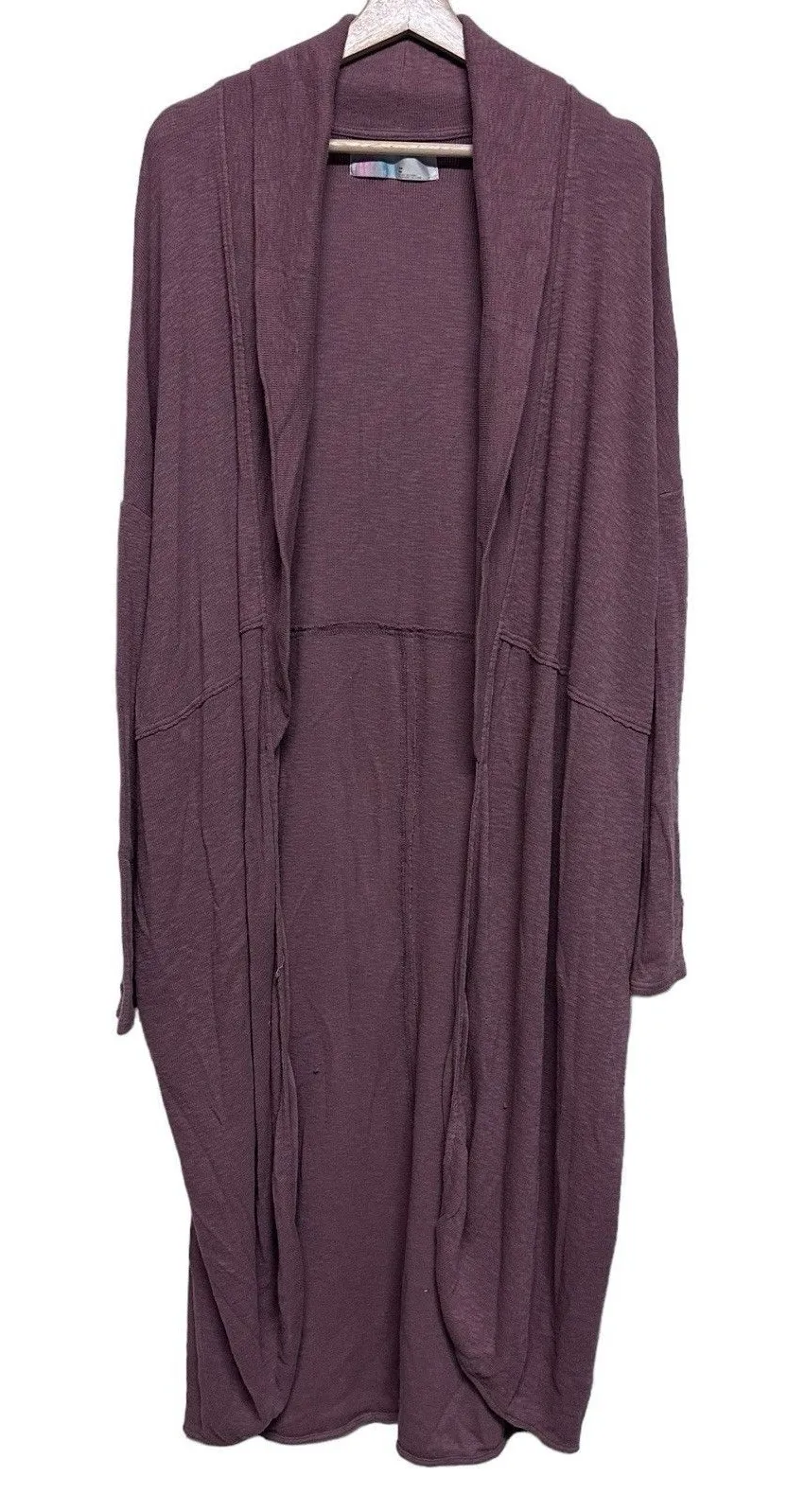 The FP Beach Bicoastal Long Open Cardigan Sweater in Mauve, Size M, is a stylish and versatile piece . This lightweight sweater features a solid purple color and long sleeves, making it ideal for layering over your favorite outfits. Its open design adds a relaxed and trendy touch, while the bicoastal style brings in a beachy vibe. Perfect for a casual day out or a day at the beach, this cardigan combines comfort and fashion effortlessly.