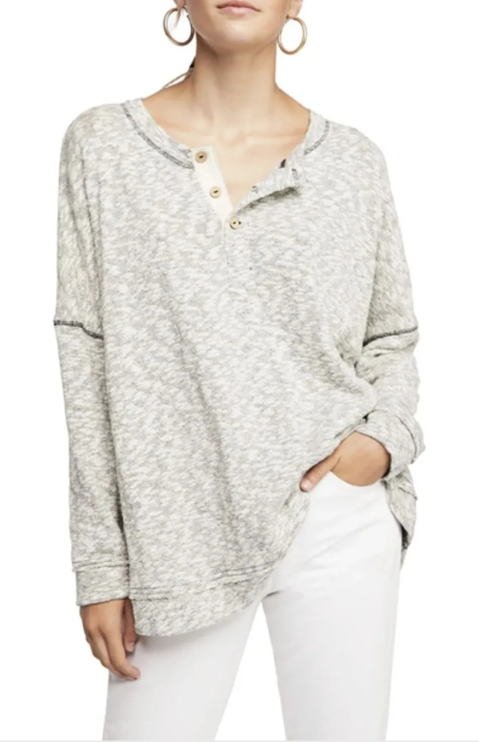 Measurements: • Length: 30 in • Chest (pit to pit): 23 in Style: Pullover Department: Women Material: Cotton Blend, Polyester, Elastane Neckline: Crew Neck Sleeve Length: Long Sleeve Type: Sweater Features: Oversized, Stretch, Pockets Pattern: Geometric Sleeve Type: Dolman Sleeve Fabric Type: Knit Accents: Button Knit Style: Waffle-Knit Season: Fall, Spring Fit: Relaxed Keywords: Free People, henley, sweatshirt, pullover, long sleeve, casual, loungewear, athleisure, cozy, relaxed fit, marled knit, button detail, distressed, oversized Offers welcome! Fast Shipping!